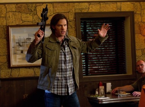 Estamos supondo que os caras brandindo armas em um jantar calmonas fotos da The CW são os maus, então ... embora nunca se sabe,com este show. (Aparentemente, o Leviatã que clonou Dean não está muito satisfeito com sua desvantagem de altura e precisa de umpouco de um impulso.)